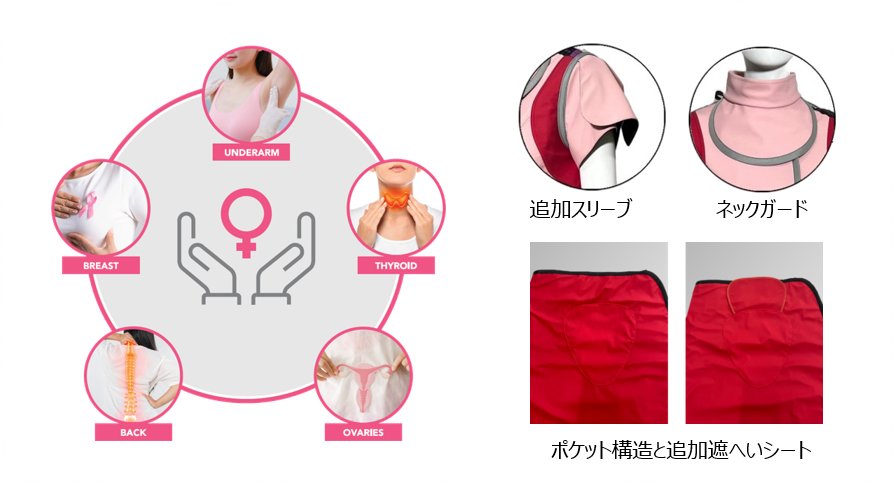・Features a pocket structure on the front of the skirt that allows for the insertion of a removable shielding sheet.