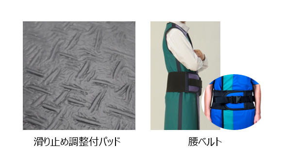 Furthermore, we have incorporated design elements to reduce weight not only in the materials but also in the shoulder pads and waist belt. Additionally, the use of “KRYPTOLiTE,” a new ultra-lightweight, lead-free shielding material, ensures that you can wear the apron for extended periods without feeling the weight.