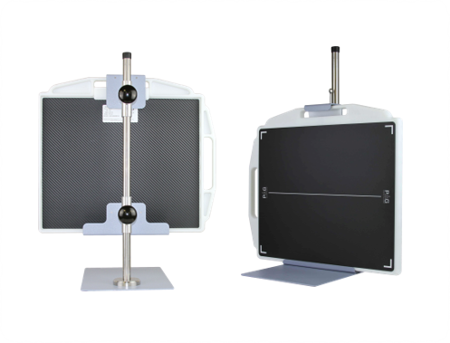 This mobile FPD holder is versatile for use in various settings, including operating rooms, general imaging rooms, emergency departments, and wheelchair-based imaging. It can secure either a standalone FPD or an FPD with the PAG attached, making it suitable for a wide range of scenarios such as lateral and oblique imaging. It can also be used in a horizontal position. It accommodates FPDs ranging from 10×12 inches to 17×17 inches, as well as FPD protective holders. With a total