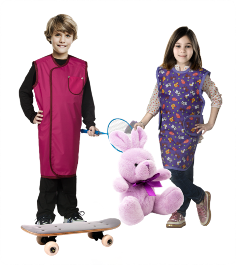 You can choose between coat aprons and double-sided aprons for children. We offer three sizes based on age. They can be customized in a variety of colors and designs.