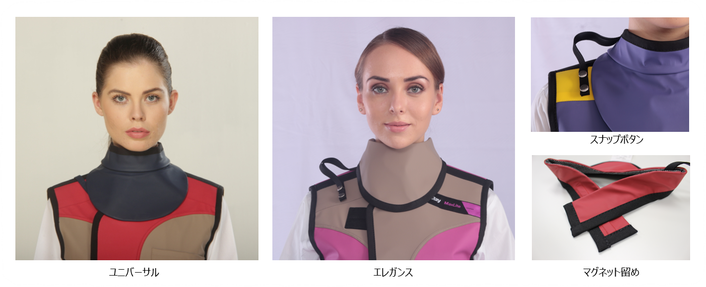 Protects the thyroid gland, which is sensitive to X-rays. In addition to the Velcro type, a magnetic type is also available for easy attachment and removal.
