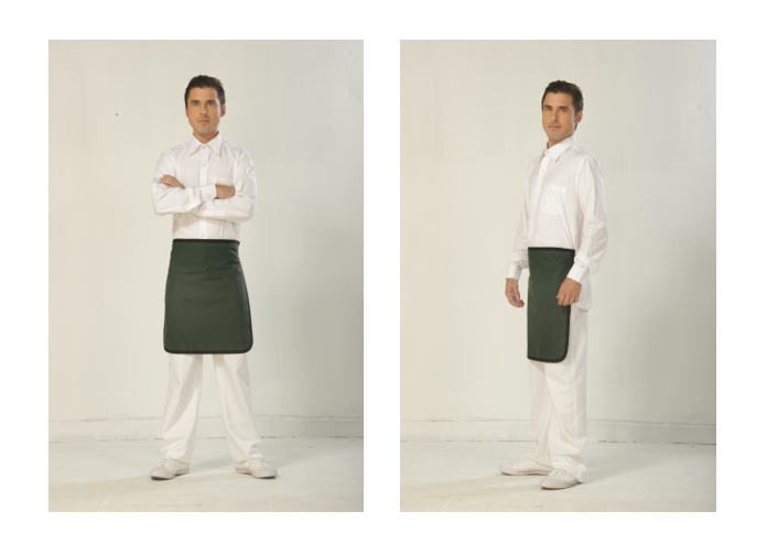 All neck guards can be attached to the apron with snap buttons to prevent them from falling off.
