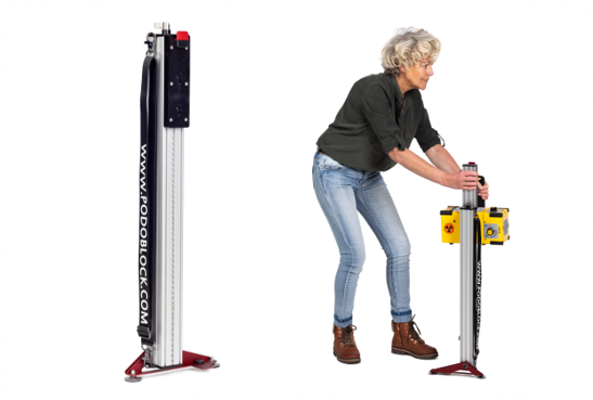 This is a support stand for portable X-ray imaging systems. It allows you to stand behind the unit while operating it, ensuring safe imaging. It can be easily adjusted to the height, angle, and position required for any imaging task, and since the angle is freely adjustable, you can capture precise skyline views. It is compatible with most X-ray systems and can support loads up to 15 kg.