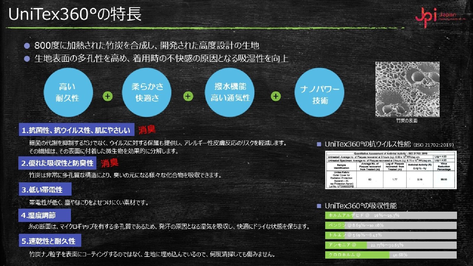 UniTex360°" deodorant lining using charcoal - ITEM2023 JIRA Specific Theme