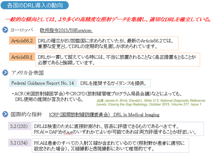 診断参考レベル(DRLs)の使用を義務化又は推奨しています。