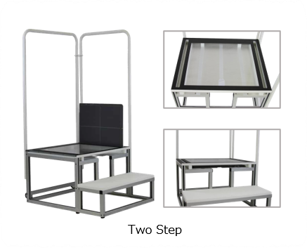 管球が十分に下がらない撮影環境に対応した2ステップモデルもご用意しています。