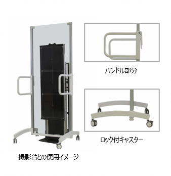 長尺撮影時、固定の難しい患者様を安心して支えることができるハンドル付き保持台です。