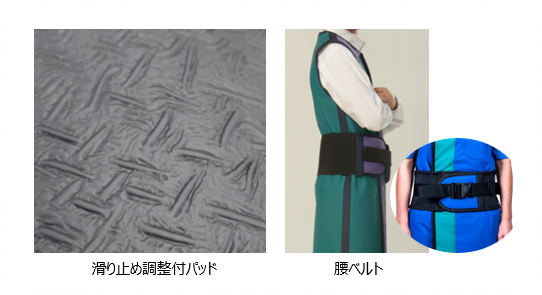 パッドや腰ベルトを標準装備し、軽快にご着用いただくことができます。