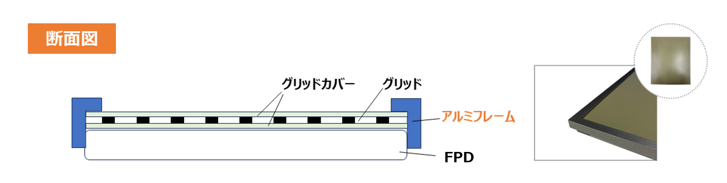 - フレーム加工を施すことでグリッドを保護し、落下などの衝撃から守ります。