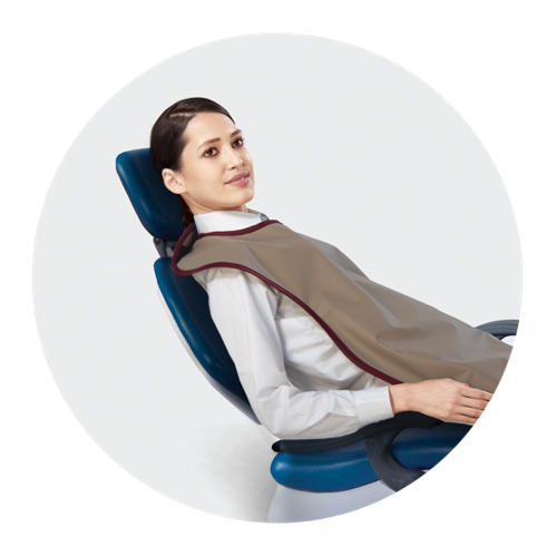 デンタル撮影用エプロンです。椅子に座ったまま簡単にご着用いただけます。