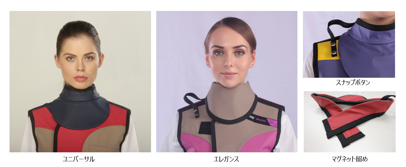 X線に敏感な甲状腺を保護します。マジックテープタイプのほか、着脱が簡単なマグネットタイプもございます。