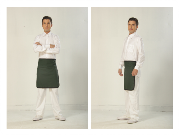 すべてのネックガードは、スナップボタンでエプロンに取り付け可能なため、落下を防止することができます。
