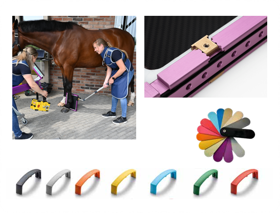 Podoblockでの固定用5mmアダプタが付属されており、Podoblockと一緒に使用することで、蹄検査の際に常に同じ方向と角度で撮影することが可能です。または取り外し可能なハンドルGreppstr 2.1が付いてます。