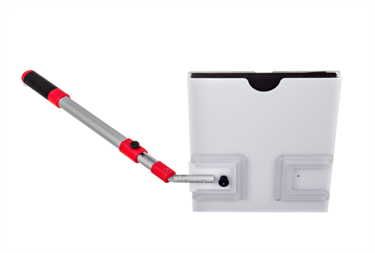 伸縮式保持スティックを搭載し、撮影者が馬から離れた状態でも、安定してカセッテのポジショニングを行うことができます。
